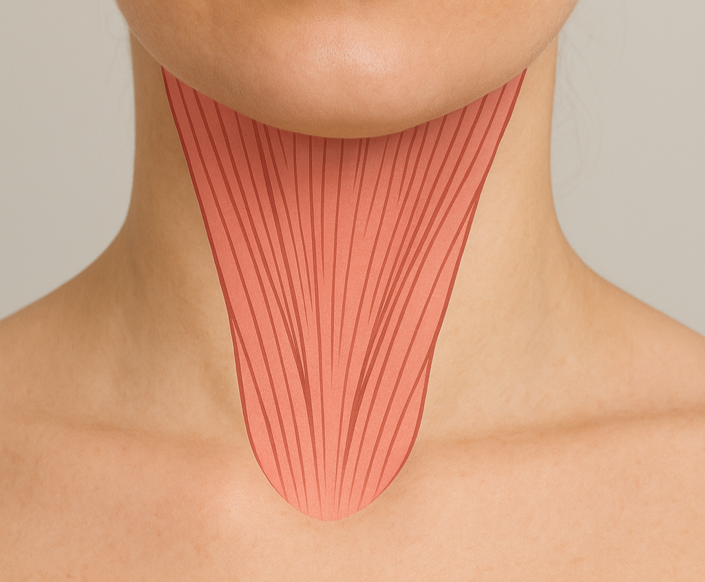 른바 ‘목주름 밴드(platysmal band)’가 도드라지면서 나이 들어 보이는 인상을 줄 수 있습니다.